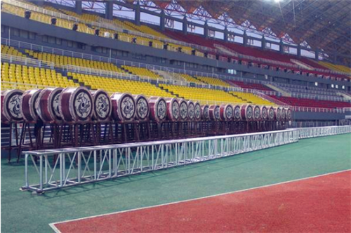 圖②:位于體育場(chǎng)一角的表演道具。