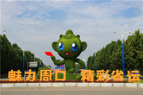 當(dāng)日上午,記者在東新區(qū)周口大道與文昌大道交叉口看到,巨大的運(yùn)動(dòng)會(huì)吉祥物造型“泥娃”正在招手,向每一位路人致意?!镑攘χ芸?,精彩省運(yùn)”的口號(hào)立于泥娃兩側(cè),引人注目。中心路口的轉(zhuǎn)盤花壇內(nèi)已煥然一新,五顏六色的花朵正以嬌艷的姿態(tài),歡迎四海賓朋共聚周口。