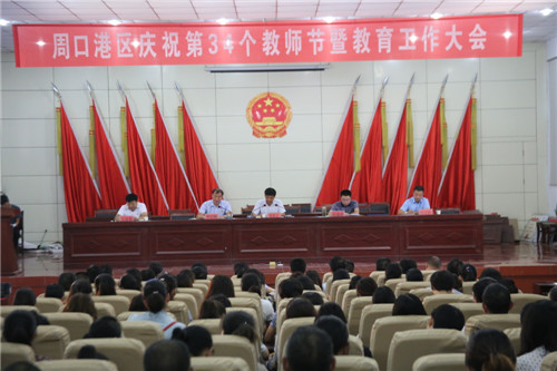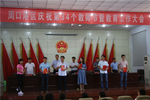 港區(qū)黨委委員張東立代表港區(qū)黨委、管委會(huì)向港區(qū)全體教育工作者、離退休教師致以節(jié)日的問候致。張東立說,周口港區(qū)自成立以來,每年都舉行隆重的教師節(jié)慶祝表彰大會(huì),大張旗鼓表彰一大批優(yōu)秀教師、優(yōu)秀校長、先進(jìn)教育工作者等教師楷模,在全區(qū)營造了尊師重教的濃厚氛圍。近年來,全區(qū)總體辦學(xué)條件明顯改善,各級(jí)教育協(xié)調(diào)發(fā)展,教育環(huán)境明顯優(yōu)化,教師隊(duì)伍建設(shè)明顯加強(qiáng),教育質(zhì)量明顯提高,群眾滿意度明顯提升。