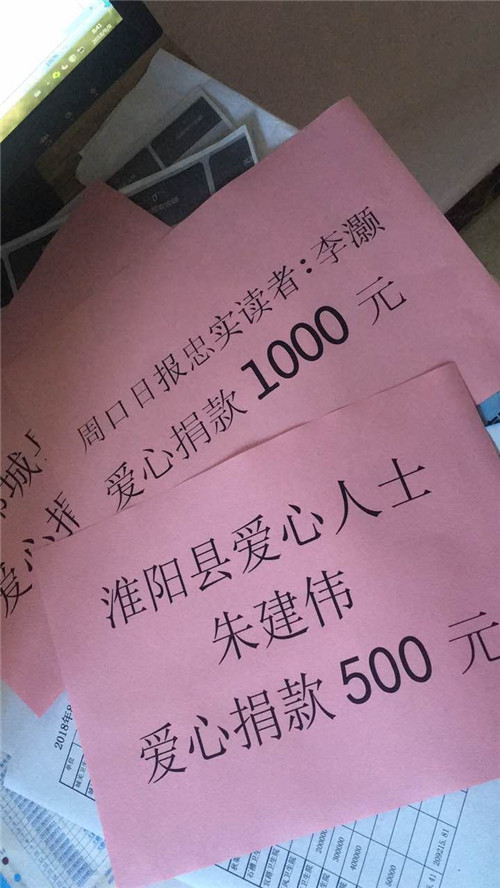 報道發(fā)出后,鄲城縣衛(wèi)計委主任付登霄第一時間作出響應(yīng),批復(fù)2000元錢資助趙家,囑咐駐村干部不能因家庭特困而導(dǎo)致孩子輟學(xué),付登霄表示將長期關(guān)注這個貧困家庭;周口日報忠實讀者李灝遠在上海,看到報道后立即通過本報記者給趙家匯款1000元;淮陽愛心人士朱建偉愛心捐款500元;寧平鎮(zhèn)中心校正在組織教職員工捐款……
