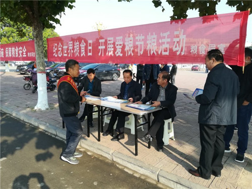 在世界糧食日當(dāng)天,以縣糧食局為牽頭單位,在縣政府及局門口設(shè)立宣傳主會場,制作展板4塊,懸掛條幅32條,出動宣傳車6輛,數(shù)十名工作人員統(tǒng)一佩戴宣傳標(biāo)語綬帶,為過往市民宣傳講解糧食安全知識,并接受全縣種糧大戶、合作社人員現(xiàn)場咨詢。當(dāng)日,主會場共發(fā)放宣傳資料3000余份,讓廣大市民了解糧食安全、愛糧節(jié)糧、糧油選購、合理膳食等科普知識。