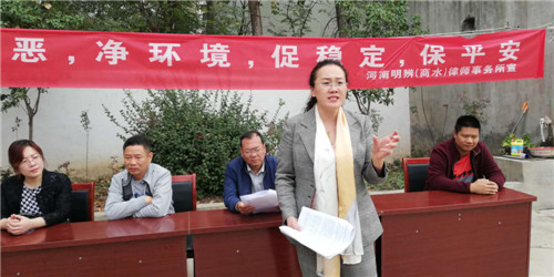 10月21日上午,商水縣法院駐城關(guān)鄉(xiāng)柴堂村工作隊(duì)、縣司法局和河南明辯律師事務(wù)所到基層集中開(kāi)展掃黑除惡法律宣傳和咨詢活動(dòng)。