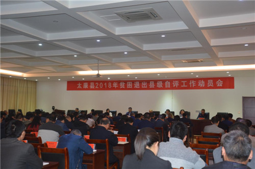10月21日,太康縣在脫貧攻堅指揮部三樓會議室召開2018貧困退出縣級自評工作動員會,縣委副書記、政法委書記王程清,縣委常委、副縣長張保華、王永剛、王正義、司春榮、劉鳳芹、??サ瓤h級領(lǐng)導(dǎo)以及縣直有關(guān)單位扶貧工作負責(zé)同志參加了會議。