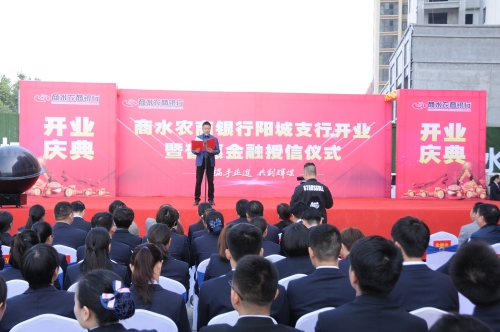 10月24日,商水農(nóng)商銀行舉行陽城支行開業(yè)暨 普惠金融授信儀式。該行行長李楠及中層以上人員參加儀式??h金融辦負責人姜建中 、縣人民銀行行長徐明、銀監(jiān)辦主任張明瑭,部分客戶代表應邀出席儀式,儀式由姜建中主持。