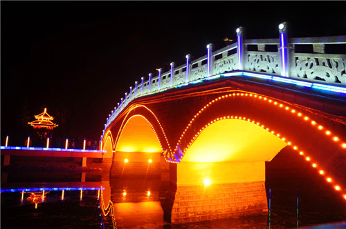 統(tǒng)計(jì)數(shù)據(jù)顯示,貫穿城區(qū)“五河”的濱水景觀廊道目前已達(dá)45公里,環(huán)繞互通的水系雨污分流,清波蕩漾,千年古城活力再現(xiàn);沿岸廣場(chǎng)、游園、玉欄、花木、亭、廊、親水平臺(tái),玲瓏別致,相映成趣,形成了無(wú)數(shù)個(gè)多元空間,為市民提供了休閑健身空間和漫步快跑的理想場(chǎng)所;城區(qū)的50多座街心主題文化園,依勢(shì)而修,與沿河的美化、綠化、亮化融為一體,每天傍晚,清波蕩漾,虹橋飛架,臥波噴泉伴隨著悠揚(yáng)的音樂(lè)翩翩歡舞,“五河”上下,燈火璀璨,絢麗多彩,如夢(mèng)如幻?!熬藕永@真源,五湖潤(rùn)鹿邑”的生態(tài)水系景觀讓行走其間的人恍若走進(jìn)江南水鄉(xiāng),人在水上,水在畫中的美妙意境讓行走其間的人身心放松、回歸自然。