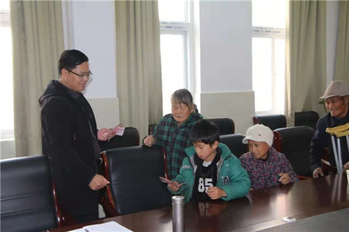“給俺學(xué)校2個學(xué)生捐款是二實小的晉老師介紹的——我是二實小的學(xué)生家長,我們推薦的2個同學(xué)他們調(diào)查后符合他們的捐助條件,就給每個孩子捐了3000元。捐款座談結(jié)束就快中午了,留他們吃飯怎么也留不住?!编惓且桓邎F委的周從海老師說起受助經(jīng)過,聽起來也很簡單。