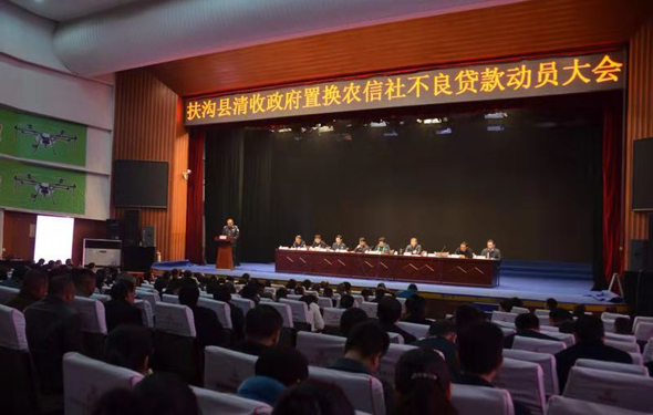 11月21日,扶溝縣召開政府置換農信社不良貸款清收工作動員會。會議貫徹落實省、市有關部署,動員全縣上下統一思想,提高認識,細化措施,夯實責任,推動政府置換農信社不良貸款清收工作深入開展、取得實效。張穎波、張峰、王偉、常青、王霄靈、陳建華、李建設等縣領導出席會議??h委副書記、政法委書記張峰主持會議。