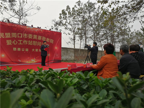 11月21日上午,民盟周口市委到黃寨敬老院慰問。周口市人大常委會原副主任、民盟周口市委原主委王建莊,民盟周口市委主委、市科協(xié)主席李寧,民盟周口市委專職副主委兼秘書長康波;商水縣委副書記、政法委書記閆冬梅,縣政協(xié)副主席、發(fā)改委主任朱學習,縣民政局局長朱赫,黃寨鎮(zhèn)黨委書記朱宏偉,鎮(zhèn)長高延等參加慰問活動。