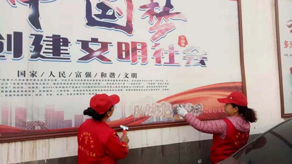 “我們有的是雙手,就算小廣告再多,也得把他們‘消滅’干凈。”志愿者孫存梅一邊用鏟刀清理墻上的小廣告,一邊幽默地說(shuō),“大冬天,全當(dāng)活動(dòng)活動(dòng)筋骨?!?/p>