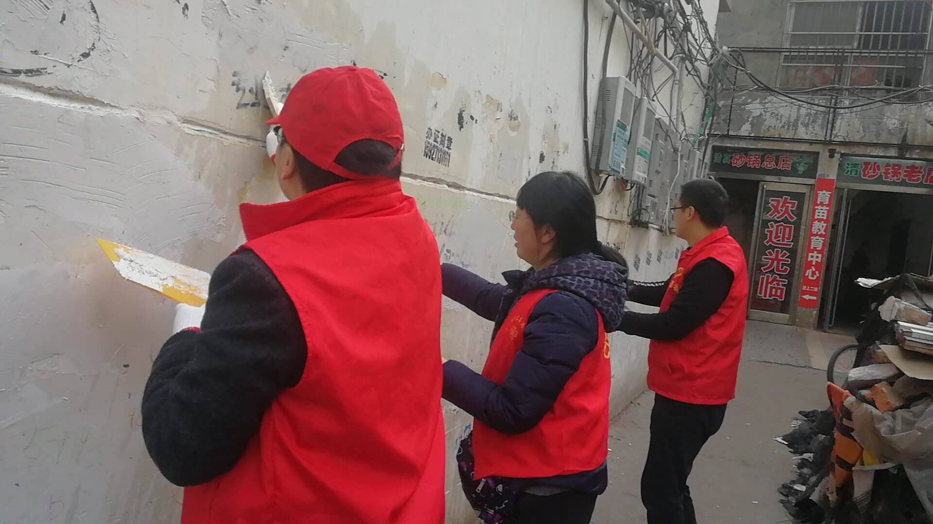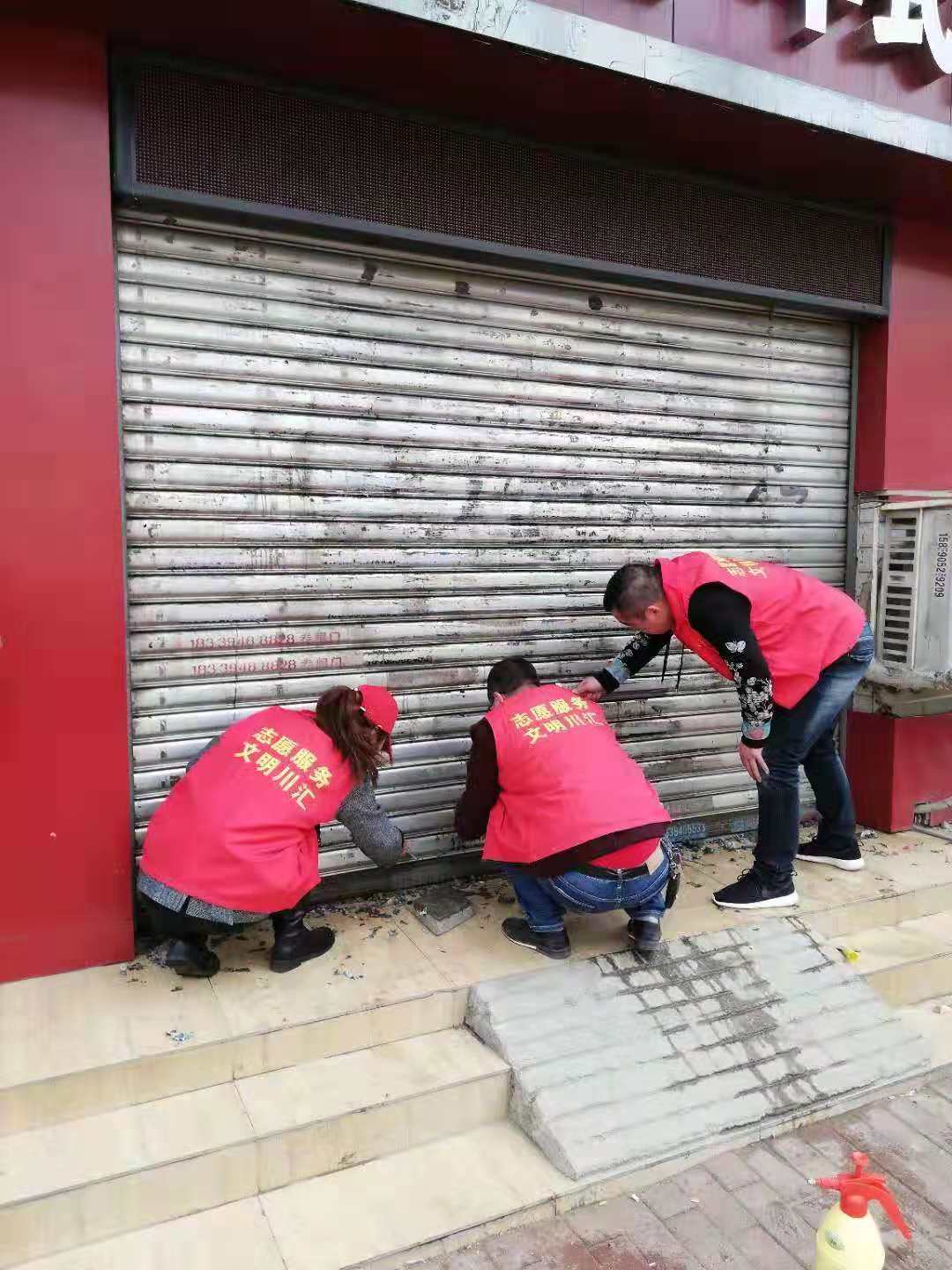 作為城市管理和市容環(huán)境整治的“主戰(zhàn)場(chǎng)”,川匯區(qū)自11月起設(shè)立“市容工作日”,進(jìn)一步深化“五城聯(lián)創(chuàng)”工作,切實(shí)改善中心城區(qū)面貌。11月27日,“市容工作日”活動(dòng)正式啟動(dòng),川匯區(qū)各單位紛紛組織志愿者走上街頭,在各自轄區(qū)開(kāi)展小廣告清理等環(huán)境綜合整治工作。圖一為志愿者粉刷布滿(mǎn)小廣告的建筑物外墻。圖二為志愿者清理地面上的小廣告。圖三為志愿者清理卷閘門(mén)上的小廣告。