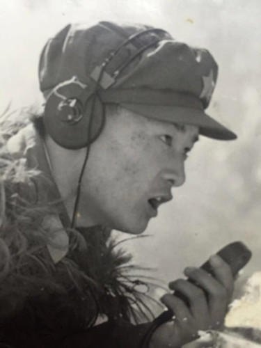 這時候,反撲的敵人越來越近了,蔣慶泉向指揮部的兩名話務(wù)戰(zhàn)士谷德泰和陸洪坤報告了這一情況。看著如潮水般逼近的敵人,蔣慶泉拼盡全力,沖著步話機嘶吼:“別廢話!向我所在的碉堡頂開炮!”。在陣地暗堡中,幸存的戰(zhàn)士緊緊圍在蔣慶泉身邊,以保護他向我炮兵指揮部通報目標(biāo)的位置。