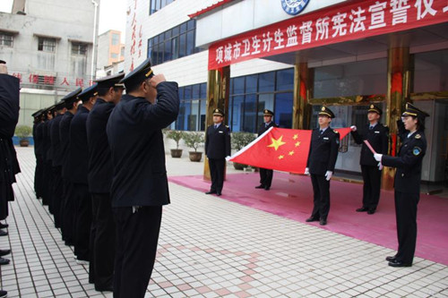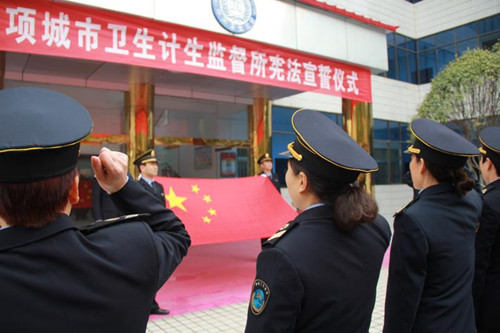 12月4日在我國(guó)第五個(gè)國(guó)家憲法日來(lái)臨之際,項(xiàng)城市衛(wèi)生計(jì)生監(jiān)督所舉行憲法宣誓儀式,旨在引導(dǎo)全體衛(wèi)生計(jì)生監(jiān)督人員牢固樹(shù)立憲法至上意識(shí),增強(qiáng)憲法觀(guān)念,自覺(jué)維護(hù)憲法尊嚴(yán)。