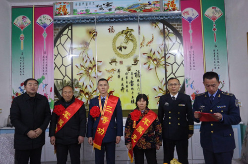 軍地聯(lián)手鑼鼓喧天送喜報(bào),功臣家人披紅戴花受尊崇??战当娔巢渴翘丶?jí)英雄黃繼光生前所在部隊(duì),今年以來(lái),先后有4名周口籍官兵在各類(lèi)重大演訓(xùn)任務(wù)中立功受獎(jiǎng),為了使軍人的榮譽(yù)向官兵家庭拓展、向全社會(huì)輻射,該部決定開(kāi)展“功耀門(mén)楣送喜報(bào)進(jìn)家門(mén)”活動(dòng),利用12月14日、15日兩天時(shí)間,選派專(zhuān)人成立“報(bào)喜”小分隊(duì),為我市4名官兵家庭送去立功喜報(bào)和慰問(wèn)金。