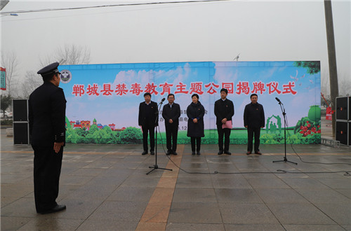 12月21日,鄲城縣舉行禁毒主題公園揭牌儀式,縣委書記羅文閣,縣委副書記、政法委書記、縣禁毒委主任崔衛(wèi)國,縣人大常委會主任李建軍,縣政協(xié)主席姜永來等出席儀式并為禁毒主題公園揭牌。