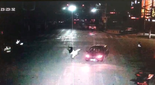 當晚23時23分,這輛車號為P733B1的黑色東風風行SUV汽車出現(xiàn)在路口。在強行闖過民警設(shè)立的卡點時后,又試圖左拐向文化路方向逃離,在路口西北角執(zhí)勤的路查四中隊協(xié)警石巖快速上前攔截。孰料,該車不但未停,反而加速向前沖,石巖躲閃不及被撞到該車擋風玻璃后又被撞出數(shù)米遠,重重地摔在馬路上。