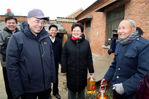 李留心來到顧福元等貧困戶的家中,送上米面油等慰問品,聽取他們對河南農(nóng)大幫扶工作的意見和建議。李留心說,在對馮老村前期的幫扶工作中,河南農(nóng)大投入了大量的人力、物力、財力,幫助馮老改善了村容村貌,讓不少群眾擺脫了貧困,取得了較為顯著的成績。但幫扶不能斷線,貧困群眾有什么要求,河南農(nóng)大都會積極幫助解決,充分發(fā)揮自身在農(nóng)業(yè)技術(shù)等方面的優(yōu)勢,長期幫助馮老搞好農(nóng)業(yè)生產(chǎn),發(fā)展集體經(jīng)濟,讓家家戶戶都能有事情做,讓更多的群眾早日徹底擺脫貧困,常吃常有,過上富裕生活。