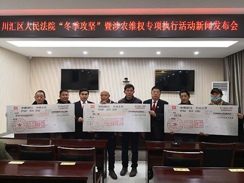12月26日下午,川匯區(qū)人民法院召開“冬季攻堅”暨涉農(nóng)維權專項活動新聞發(fā)布會。周口日報等新聞媒體和川匯區(qū)法院執(zhí)行警務局40余名干警參加了座談會。發(fā)布會現(xiàn)場,共為三名農(nóng)名工代表發(fā)放自行款21.5萬元。