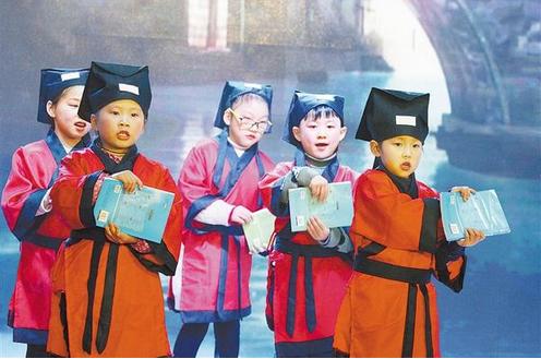 國學(xué)經(jīng)典是國家和民族的靈魂,凝聚著中華民族的智慧,展示著中華民族的精神。周口星源國際學(xué)校在教學(xué)過程中注重培養(yǎng)學(xué)生對國學(xué)經(jīng)典文化的興趣,讓學(xué)生感悟國學(xué)經(jīng)典的傳統(tǒng)文化魅力,形成人人自覺“誦經(jīng)典、悟經(jīng)典、行經(jīng)典”的良好氛圍,激發(fā)青少年繼承和發(fā)揚優(yōu)秀民族文化的信心。圖為該校學(xué)生在元旦晚會上進行國學(xué)表演。 記者 劉俊濤 攝