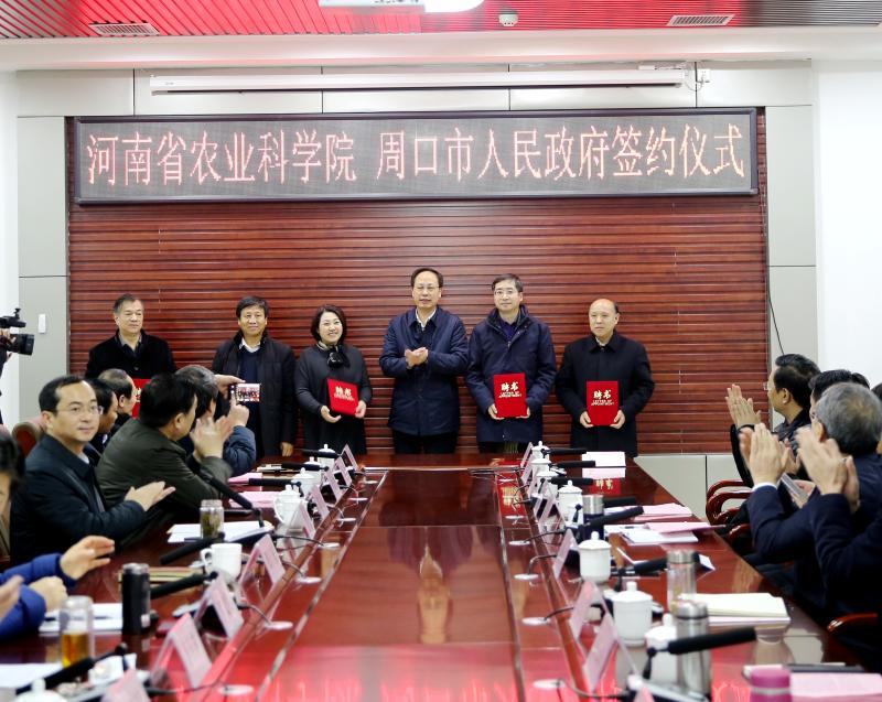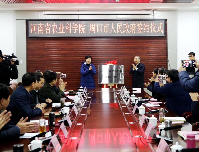 1月9日,河南省農(nóng)業(yè)科學(xué)院與周口市人民政府簽訂全面戰(zhàn)略合作協(xié)議暨河南省農(nóng)業(yè)科學(xué)院鄲城分院揭牌儀式在鄲城舉行,中國工程院院士、省農(nóng)科院院長張新友,省農(nóng)科院副院長衛(wèi)文星,副市長張廣東,以及鄲城縣委書記羅文閣、縣長李全林等相關(guān)負(fù)責(zé)同志參加儀式。