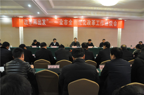 1月9日,“改革再出發(fā)”— 全市全面深化改革工作座談會在商水召開。會議對40年全市改革開放取得的顯著成績和變化進行暢談式總結回顧,對今后一個時期深化改革工作進行相互啟發(fā)式思考謀劃。