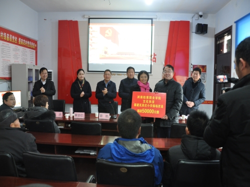 作為河南省人民檢察院的直屬學(xué)校,河南檢察職業(yè)學(xué)院也積極參與瓦房莊的脫貧攻堅(jiān)工作。在當(dāng)日舉行的河南檢察職業(yè)學(xué)院文化扶貧啟動儀式上,他們不僅送來了精彩的黨課,還為該村小學(xué)捐贈現(xiàn)金5萬元,用于村小學(xué)操場硬化,改善辦學(xué)條件。