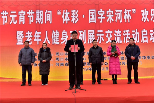 2月12日上午,由周口市教育體育局、周口市老年人體育協(xié)會主辦的2019周口市春節(jié)元宵節(jié)期間 “體彩·國字宋河杯”歡樂進萬家民俗趣味體育活動暨老年人健身系列展示交流活動在市體育中心精彩“開鑼”。