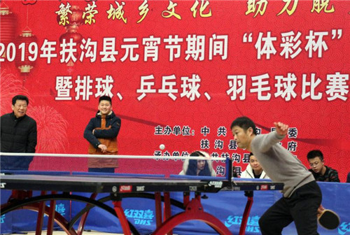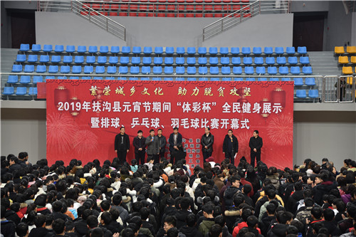 2月17日上午,元宵佳節(jié)即將來(lái)臨之際,在全縣脫貧攻堅(jiān)沖刺的關(guān)鍵時(shí)期,扶溝縣2019年元宵節(jié)“體彩杯”全民健身展示暨排球、乒乓球、羽毛球比賽活動(dòng)在縣體育館隆重開(kāi)幕。活動(dòng)旨在豐富全縣廣大人民群眾的文化生活,助力脫貧攻堅(jiān),為實(shí)現(xiàn)“五個(gè)扶溝”增光添彩??h委常委、宣傳部長(zhǎng)馬昭才,副縣長(zhǎng)吳興華等出席開(kāi)幕式。縣委宣傳部副部長(zhǎng)張根主持開(kāi)幕式。