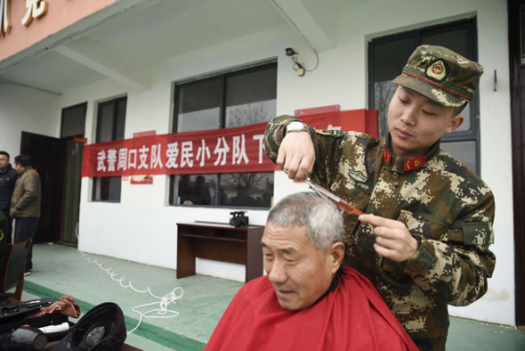 鄉(xiāng)村老年人們的身體狀況牽動(dòng)著支隊(duì)領(lǐng)導(dǎo)的心,他們派出支隊(duì)醫(yī)務(wù)人員走進(jìn)村落,在簡(jiǎn)易的地方辦起巡診。藥盒上的細(xì)心標(biāo)記,手把手的診療,情真意切囑咐,都是官兵們真切的表達(dá)。支隊(duì)理發(fā)員帶著理發(fā)工具和一顆赤誠(chéng)的心來(lái)到了村里,為老人們邊理發(fā)邊嘮家常,老人臉上樂開了花兒,笑著說(shuō)“我家孫子和你大小差不多哩!”村里的孩子們也很喜歡這群穿著軍裝的叔叔們,不僅因?yàn)樗麄兠看蝸?lái)都會(huì)送上精美學(xué)習(xí)用品,先進(jìn)的多媒體設(shè)備,更因?yàn)樗麄兩砩宪娙颂赜械呢?zé)任與擔(dān)當(dāng)。