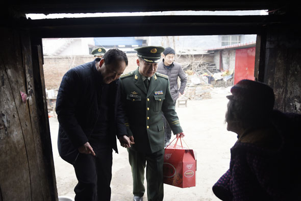 商水縣湯莊鄉(xiāng)付樓村是武警周口支隊(duì)的精準(zhǔn)扶貧村,今年春節(jié)期間,武警周口支隊(duì)支隊(duì)長(zhǎng)楊大嶺帶著周口支隊(duì)愛民小分隊(duì)再次來(lái)到了村中,送上大米、面粉、油等生活物資,更是送來(lái)了生活上的幫助和情感上的關(guān)懷。