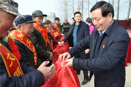 3月5日上午,商水縣化河鄉(xiāng)與縣移動公司在大王莊文化廣場召開脫貧光榮戶、孝老敬賢戶文明衛(wèi)生戶表彰暨送文化、衛(wèi)生下鄉(xiāng)活動議會??h委常委、宣傳部長李本磊、縣工會主席盧紅兵、縣移動公司經(jīng)理黃小帆、化河鄉(xiāng)黨委書記高永強(qiáng)等出席活動現(xiàn)場。大王莊村及周邊村莊部分群眾500多人參加了活動。