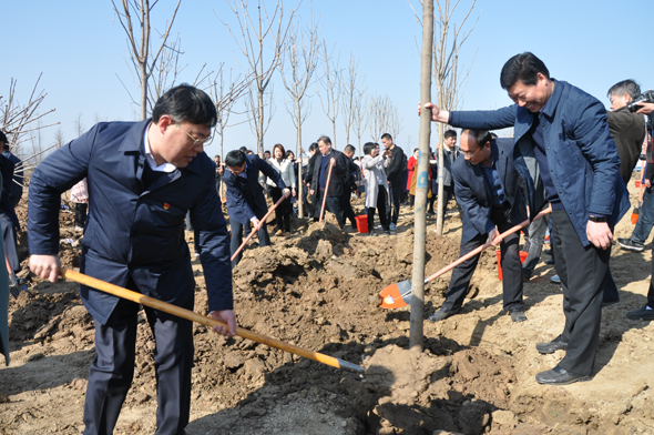 開工儀式結(jié)束后,與會領(lǐng)導在森林公園項目所在地參加植樹造林活動,為森林公園植上第一片新綠。