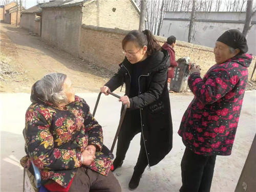 鏗鏘扶貧路,拳拳民生情。林娜加班加點(diǎn),扎實(shí)的作風(fēng)不僅有效推動了幫扶工作的順利推進(jìn),而且也換來了當(dāng)?shù)卮迕竦摹包c(diǎn)贊”。為推進(jìn)老人戶合吃合住問題,林娜三番五次去做工作,段屯行政村于樓村86歲的老人王全英,年邁不能自理,遭兒子嫌棄,3個(gè)兒子都不愿贍養(yǎng)老人。一次,陰雨天,老人不慎跌倒,摔傷胳膊,兒女們都不管不顧,林娜在走訪的過程中了解情況后,立即幫老人買來膏藥貼上,同時(shí)開始做兒女的思想工作,“家有一老似有一寶,孝親愛老是中華民族的傳統(tǒng)美德”,經(jīng)過林娜再三做思想工作,三個(gè)兒子茅塞頓開,愿意贍養(yǎng)老人,最終老人在三個(gè)兒子家輪流吃住。在林娜及隊(duì)員的共同努力下,段屯行政村不僅老人戶全部合戶,而且在全村掀起了爭做賢孫孝媳的局面。一名老黨員袁士成,每次見了工作隊(duì)都豎起大拇指說:“兒女好,兒女好,兒女再好不如共產(chǎn)黨對俺好”。