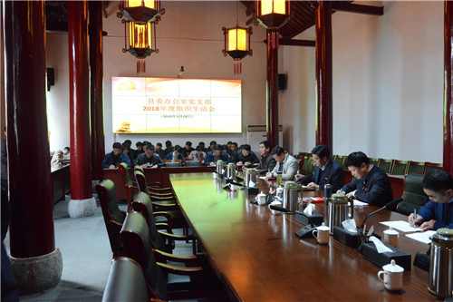 3月29日下午,鹿邑縣委辦公室黨支部召開(kāi)2018年度組織生活會(huì)并開(kāi)展民主評(píng)議黨員活動(dòng)。縣委書(shū)記梁建松,縣委常委、辦公室主任宋濤以一名普通黨員身份參加會(huì)議。縣委辦公室機(jī)關(guān)全體同志參加會(huì)議。