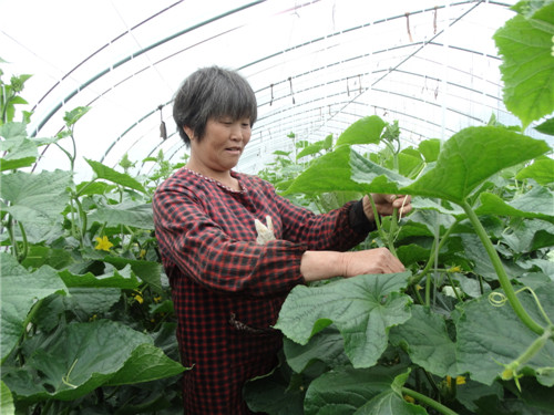 4月24日,沈丘縣周營(yíng)鎮(zhèn)趙莊村生態(tài)蔬菜大棚基地里,綠油油的吊蔓黃瓜長(zhǎng)勢(shì)喜人,少量已采摘上市。忙碌著的菜農(nóng)王翠霞告訴記者:“俺今年種了20畝地的大棚黃瓜,從種子肥料,到用水用藥,都有講究,要按標(biāo)準(zhǔn)化生產(chǎn),這樣種出來的黃瓜品質(zhì)好,客商搶著要。一畝地大棚瓜果蔬菜的年收入超過1.5萬元。”