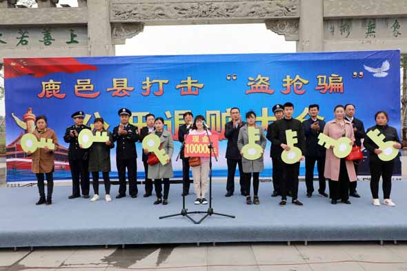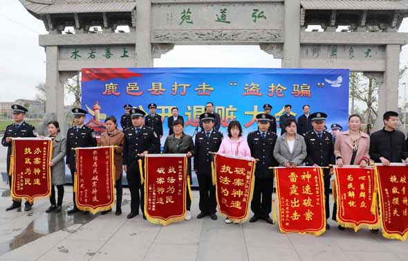 4月25日上午,鹿邑縣召開打擊“盜搶騙”專項行動公開退贓大會??h委常委、政法委書記侯自峰出席會議并講話。縣公、檢、法、司等有關(guān)部門負(fù)責(zé)人與群眾代表近300人參加退贓大會。