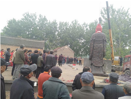 當日一大早,人們紛紛來到盤古女媧塑像現場,在包村干部朱聯玉、木崗寺行政村支部書記趙克龍及村委一班人的組織下,人們敲起了響亮的盤鼓,跳起了歡快的舞蹈,迎接盤古女媧神像的到來。