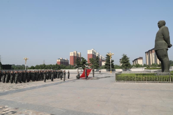“我是中國民兵,我宣誓:服從中國共產(chǎn)黨領導,積極參加國家建設,忠實履行國防義務,遵紀守法,服從命令,忠于職守,努力學習……”當日上午,在吉鴻昌將軍塑像前,太康縣全體基干民兵集體重溫了民兵誓詞。