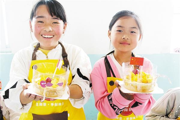 為慶?!傲弧?,日前,團(tuán)市委組織我市青年志愿者和愛(ài)心人士到西華縣李方口小學(xué)和幾十名留守兒童一起做蛋糕。圖為留守兒童展示自己做的蛋糕。記者 王凱 攝