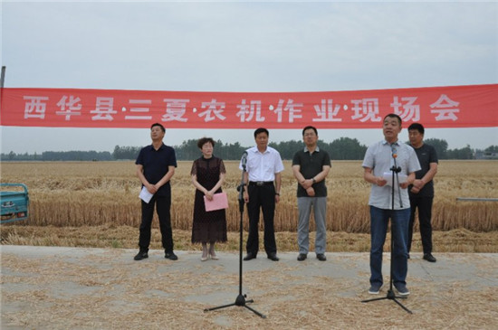 “麥浪滾滾閃金光,秣馬厲兵迎三夏”。值此三夏大忙到來之際,6月1日上午,西華縣農機局在東王營鄉(xiāng)東王營村舉辦三夏農機作業(yè)現場會,周口市農機局黨組書記、局長劉偉,西華縣委副書記、政法委書記程維崢,縣政府副縣長毛茹,東王營鄉(xiāng)黨委、政府主要負責同志,各鄉(xiāng)鎮(zhèn)、辦事處分管農業(yè)農村工作副職,東王營鄉(xiāng)部分村支部書記,縣農機局全體干部職工和部分農機合作社理事長等共80余人參加了演示會。