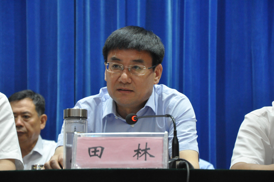 縣長田林主持會(huì)議。
