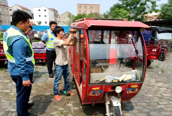 嚴管形成了高壓態(tài)勢,厚愛更維護了鄲城縣文明執(zhí)法的良好形象。該縣規(guī)定,對家用電動三輪車、電動四輪車進入縣城禁行區(qū)域的,文明執(zhí)法,不予處罰,以暫扣警示、宣傳勸導為主。對于從事非法營運的電動兩輪車、電動三輪車、電動四輪車車主不予經(jīng)濟處罰,車棚自愿切割后放行。對于老弱病殘等特殊情況及時匯報領(lǐng)導,酌情處理。