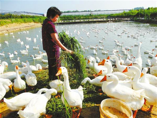 7月16日,沈丘縣周營鎮(zhèn)馬營村生態(tài)鵝養(yǎng)殖基地,工人正在喂養(yǎng)生態(tài)鵝。近年來,該鎮(zhèn)充分利用得天獨厚的生態(tài)環(huán)境優(yōu)勢,積極引導群眾發(fā)展訂單生態(tài)土雞、肉鵝、槐山羊等特色養(yǎng)殖產業(yè),全力促進農民增收致富。謝辛凌 攝