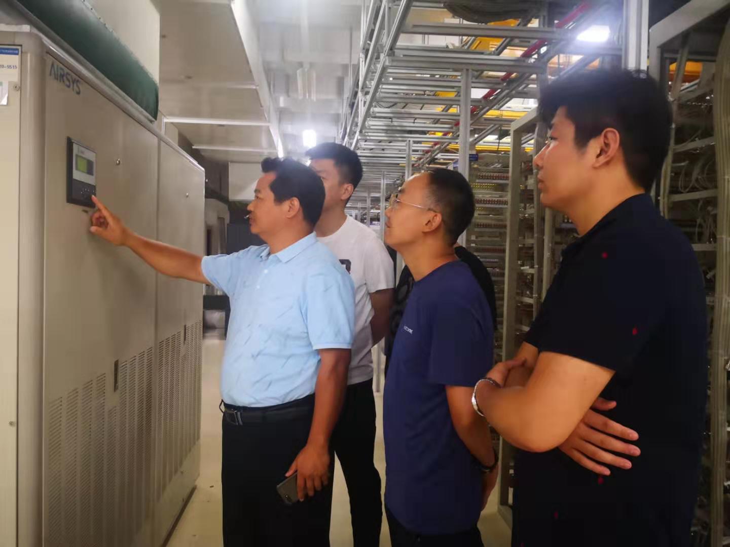郭彥軍(左一)和同事們?cè)诓榭纯照{(diào)加濕系統(tǒng)
