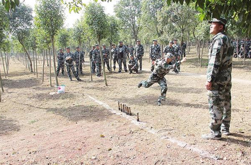 民兵應(yīng)急分隊(duì)在進(jìn)行手榴彈投擲訓(xùn)練