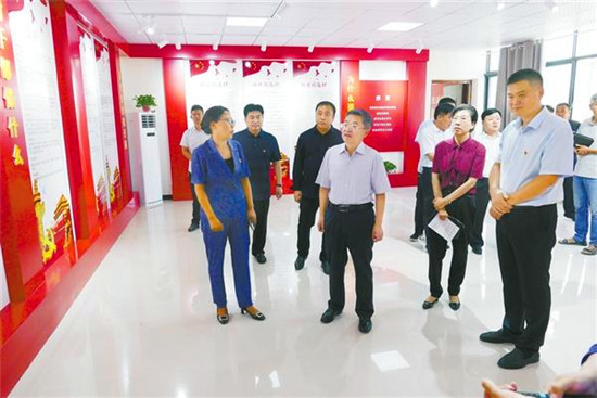 皇甫立新首先來到槐店回族鎮(zhèn)海樓社區(qū)。海樓社區(qū)位于縣城中心,是全縣政治經(jīng)濟文化中心。走進社區(qū),路兩旁紅旗飄飄,新時代、新思想、新目標、新征程等具有時代特色的宣傳畫繪制在兩邊的墻壁上。社區(qū)廣場上“百村綜合治理辦公室”的牌子特別醒目,社區(qū)辦公室有關(guān)百村綜合治理的規(guī)章制度一應(yīng)俱全?;矢α⑿聦巧鐓^(qū)的工作給予充分肯定,并就工作中存在的問題給予指正,要求社區(qū)黨支部突出建好、管好、用好村委黨員會議室,突出主題,唱響主旋律。