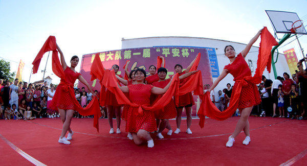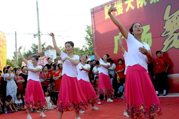 為了把節(jié)目辦的出彩,村民們非常認(rèn)真,不僅動員老少婦女們參與排練,晚上吃過飯?jiān)诖暹呉槐楸榈木殻钡侥苁炀毶蠄?,另外,他們還請來劇團(tuán)的演員當(dāng)評委,每場精彩的演出,博得大伙叫好聲。評委也被邀上臺 ,臨場助興,多才多藝的村民也見縫插針地表演一番才藝,一場村頭廣場舞大賽有聲有色,笑聲連連,展示了農(nóng)民在奔小康道路上的自信、幸福和執(zhí)著。