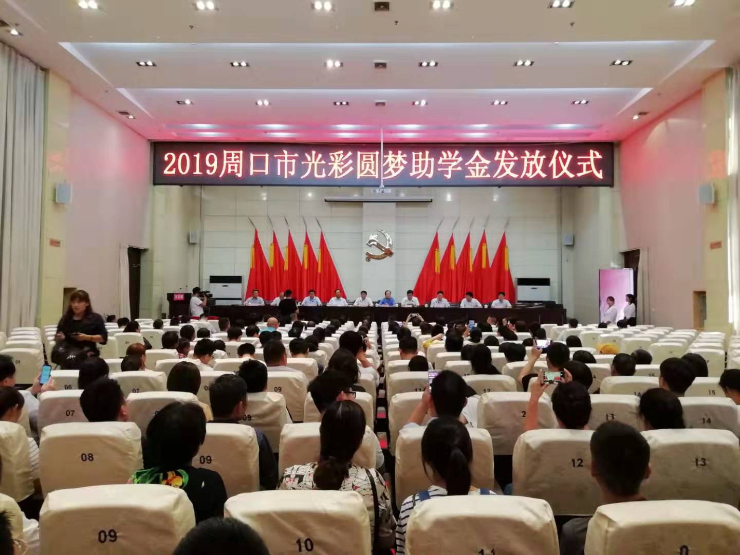 8月30日上午,2019年周口市“光彩圓夢”助學金發(fā)放儀式在川匯區(qū)舉行。市政協(xié)副主席、市工商聯(lián)主席趙萬俊,老領導李紹彬、白明寬,市委統(tǒng)戰(zhàn)部副部長、市工商聯(lián)黨組書記李飛,川匯區(qū)區(qū)委書記李宗喜,市工商聯(lián)副主席、周口市商會黨委書記徐公俊,市扶貧辦副主任程衛(wèi)東,川匯區(qū)區(qū)委常委、統(tǒng)戰(zhàn)部長宋煜及市直、區(qū)直有關單位負責同志出席儀式。