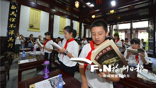 19日上午,由福州日?qǐng)?bào)和福州市教育局聯(lián)合舉辦的“探訪總書(shū)記牽掛的福州古厝”夏令營(yíng)活動(dòng)在鰲峰書(shū)院?jiǎn)?dòng)。