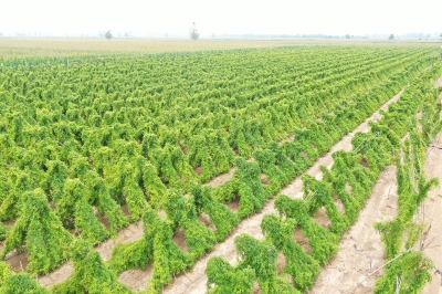 在張嶺村的西北角,200多畝地的山藥架排列整齊、枝葉繁茂。種植戶張寧偉騎著三輪車每天在山藥地邊巡視好幾遍,看長勢、看墑情、盼市場價格穩(wěn)定。“這一塊地30多畝是九斤黃,那一塊地五六畝是育種用的白玉,還有一塊地種了10多畝的西施。一畝地能產8000斤左右,第一年畝投資5000元左右,如果今年的價格持續(xù)在3元左右,那就太好了。”張寧偉看著長勢良好的山藥,美滋滋地盤算著。他說,他種植山藥是跟著村里的種植合作社種的。合作社的負責人叫張劉杰,這200多畝地分為好多家,栽種的時候是統(tǒng)一供種、統(tǒng)一管理,到時候統(tǒng)一銷售,穩(wěn)賺不賠。在鄉(xiāng)黨委政府的引導下,特色種植專業(yè)合作社積極發(fā)揮作用,在汲水鄉(xiāng)種植山藥的面積突破了2000畝。