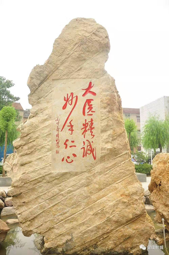 他雖然離開了鄲城,但一直關(guān)注著醫(yī)院的發(fā)展。醫(yī)院領(lǐng)導(dǎo)也多次到上海看望他,向他匯報醫(yī)院近年來的發(fā)展情況。2016年,鄲城縣人民醫(yī)院院長于健到上??赐牭结t(yī)院近年來快速健康的發(fā)展進程,周老先生非常高興,欣然提筆寫下“大醫(yī)精誠,妙手仁心”八個大字。周老先生的題詞被雕刻在一尊文化石上,座落在醫(yī)院文化廣場上。